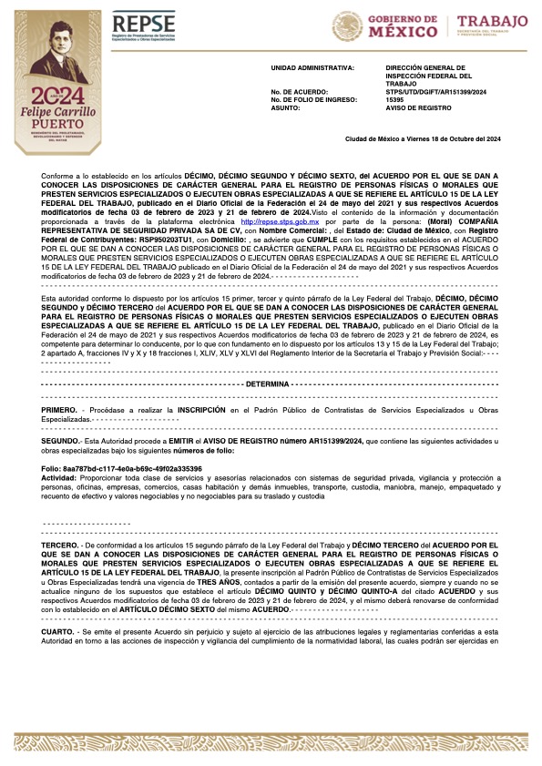 Para mayor seguridad al cliente CORESEPRI ha contratado una fianza de fidelidad para nuestros guardias de seguridad en el desarrollo de sus funciones.